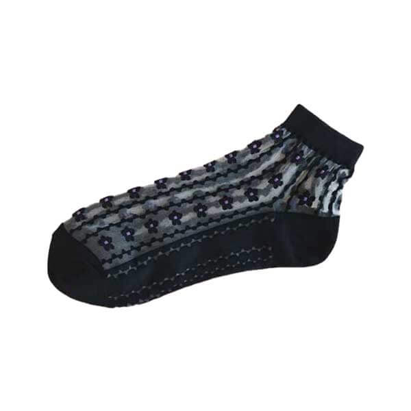 典雅時尚 花朵 曲線 透膚 水晶襪 短襪 黑色